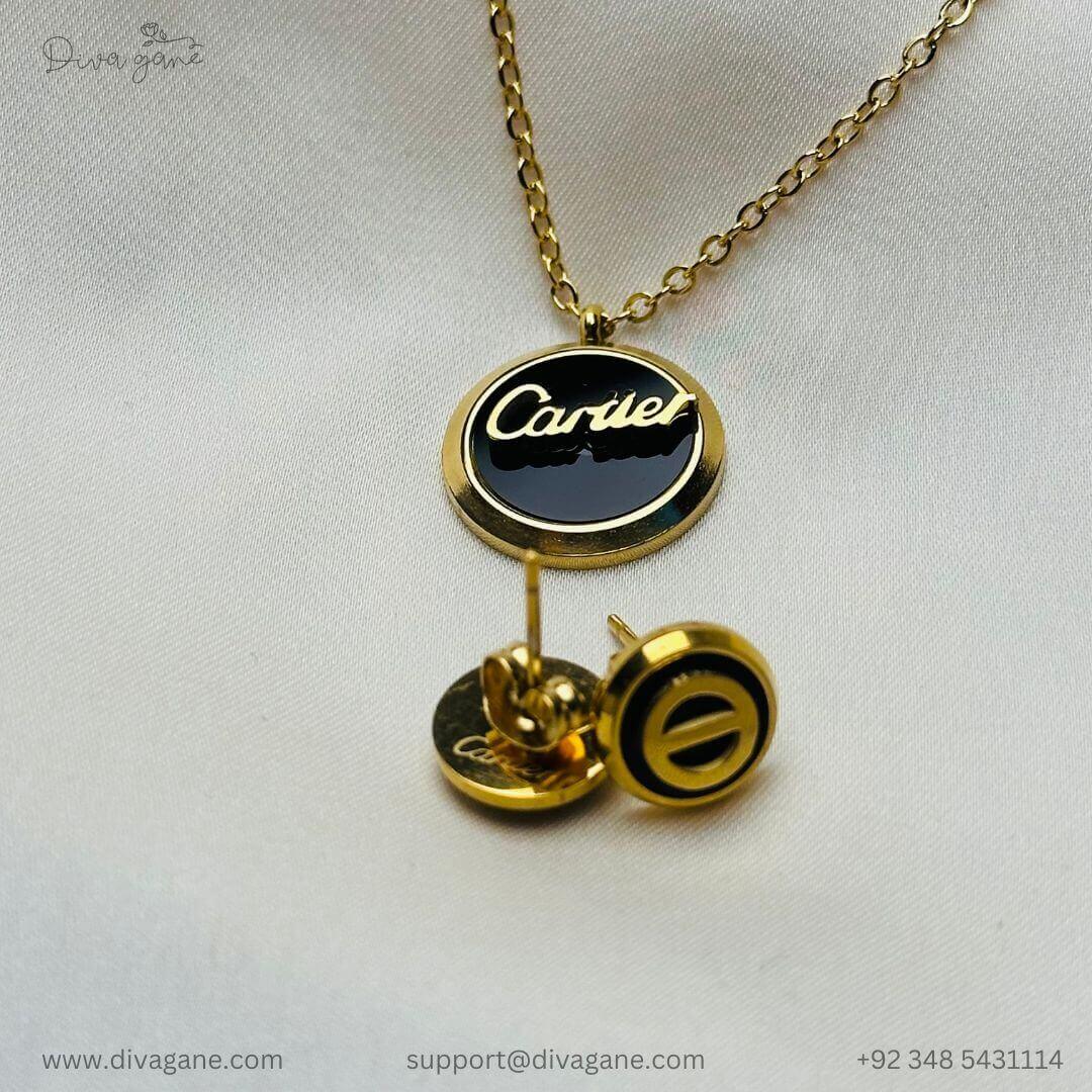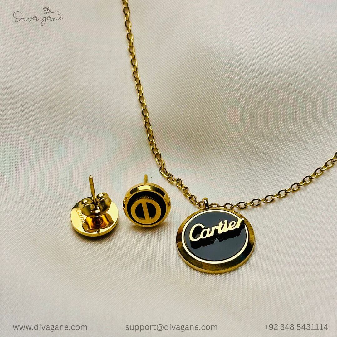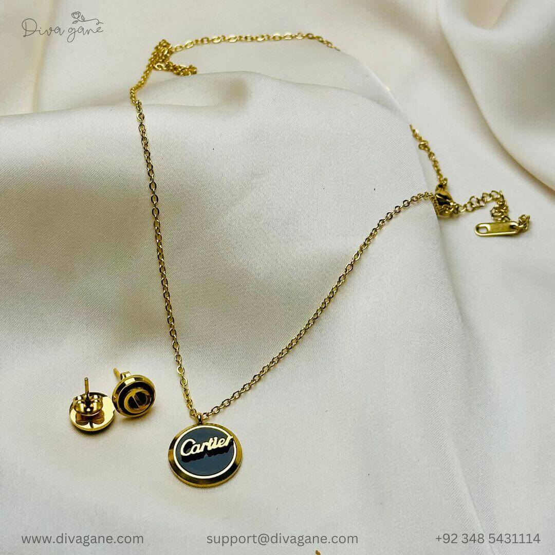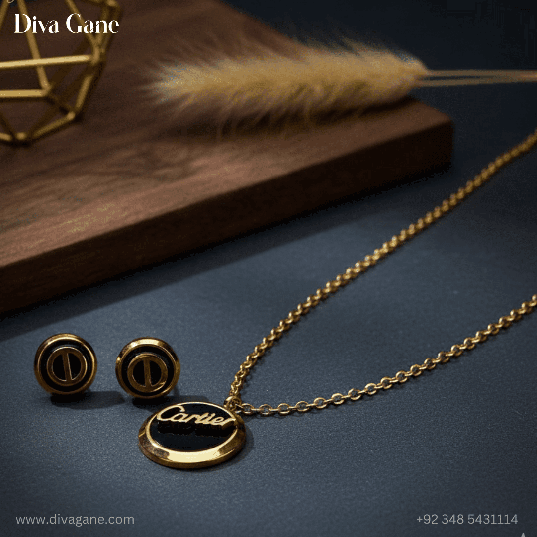 Add a touch of sophistication with this gold-black pendant featuring a matching gold chain and delicate stud accents. The black centerpiece is elegantly framed in gold, exuding timeless charm and modern elegance. Perfect for elevating everyday wear or complementing formal outfits.