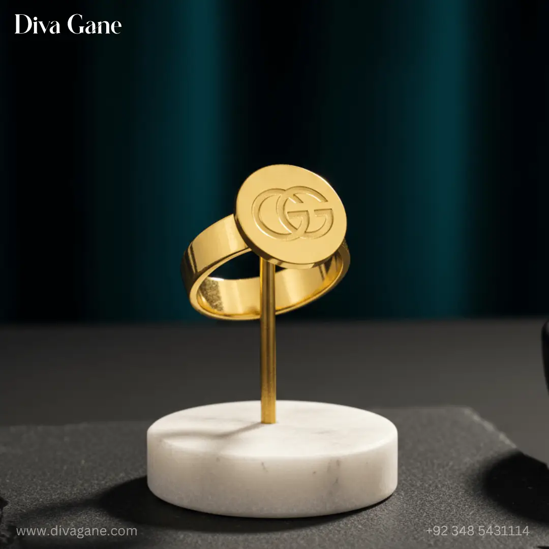 The sleek and polished finish ensures it stands out, whether worn as a statement piece or stacked with other rings for a layered look. Perfect for any occasion, the Gold Ring brings sophistication and high-fashion flair to your jewellery collection.