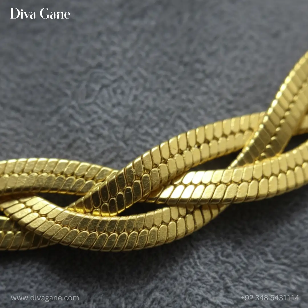 Braided Construction: Triple-interwoven flat chains for enhanced texture and shine.